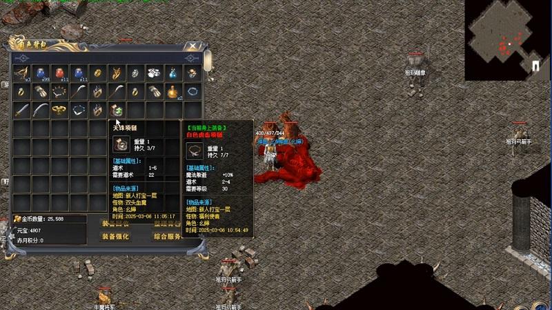 • 法师火墙封锁东侧走廊,道士骷髅引散小怪。